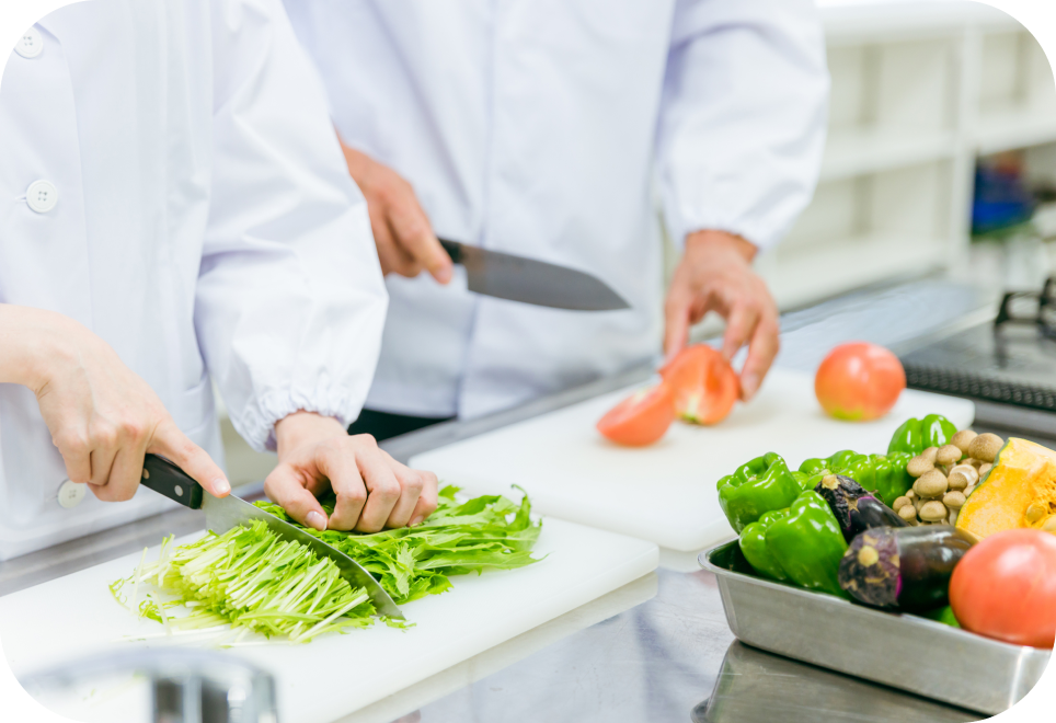 - 野菜の洗浄、カット、調味料の計量などの準備作業。
